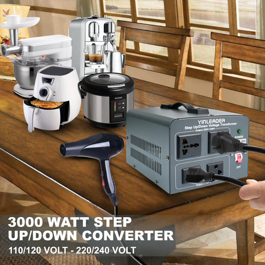 Yinleader Voltage Converter Transformer 3000w Step Up/Down Power Converter 110-120V to 220-240V/220-240V to 110-120V, with 2 US & 2 Universal Outlets, Circuit Breaker Protection (Grey)