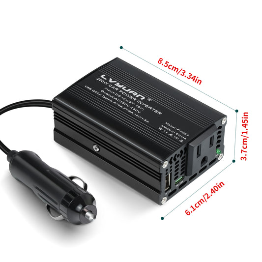 LVYUAN 200W Modified Sine Wave Car Power Inverter, DC 12V to AC 110V Converter with 20W PD USB-C & AC & 3.0 USB Adapter for Vehicles