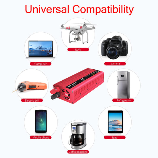 LVYUAN 2600 Watts Peak Power Inverter Modified Sine Wave DC 12V to AC 110V 120V Car Converter 2 AC Outlets + USB Adapter USB Charger for Car, RV, Camping & Home Backup Red