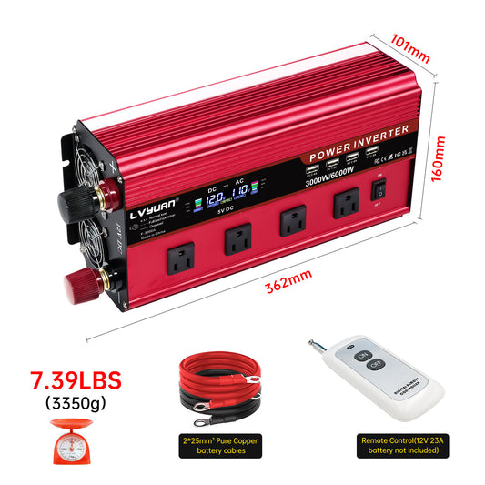 LVYUAN 3000W / 6000W Modified Sine Wave Power Inverter DC 12V to AC 110V Converter with LCD Display & Remote Control 4AC 4USB