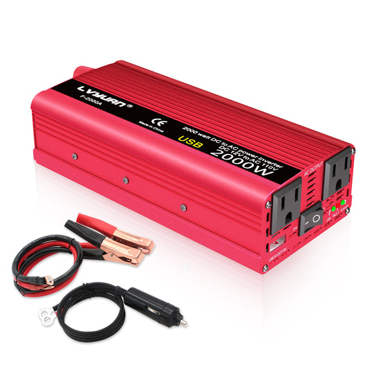 LVYUAN 2000 Watts Peak Power Inverter Modified Sine Wave DC 12V to AC 110V 120V Car Converter 2 AC Outlets + USB Adapter USB Charger for Car, RV, Camping & Home Backup Red