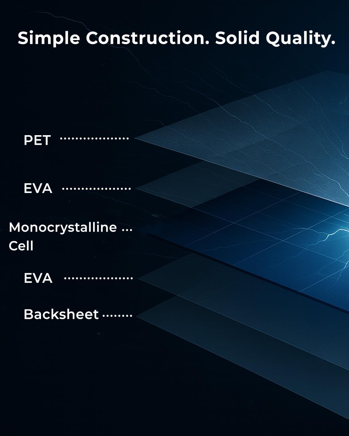 Rhythmically enhanced by monocrystalline silicon technology, the optimized solar cells in LVYUAN's 300-watt solar power panel achieve up to 23% efficiency. The higher the conversion rate per sunray, the greater the cost efficiency per square centimeter of the solar panel. Guarding your devices and solar panels with smart built-in chips, it continuously scans and monitors all operations to optimize charging speed while ensuring safety. It protects your devices from overcharging and overloading, extending the lifespan of solar panel cells.
